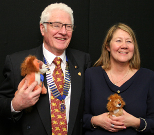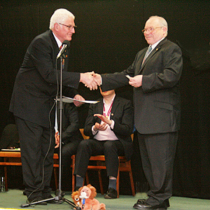 | It's not not all about money. Lion Brian, for once lost for words, receiving a chevron denoting 25 years service to Lions clubs. |
